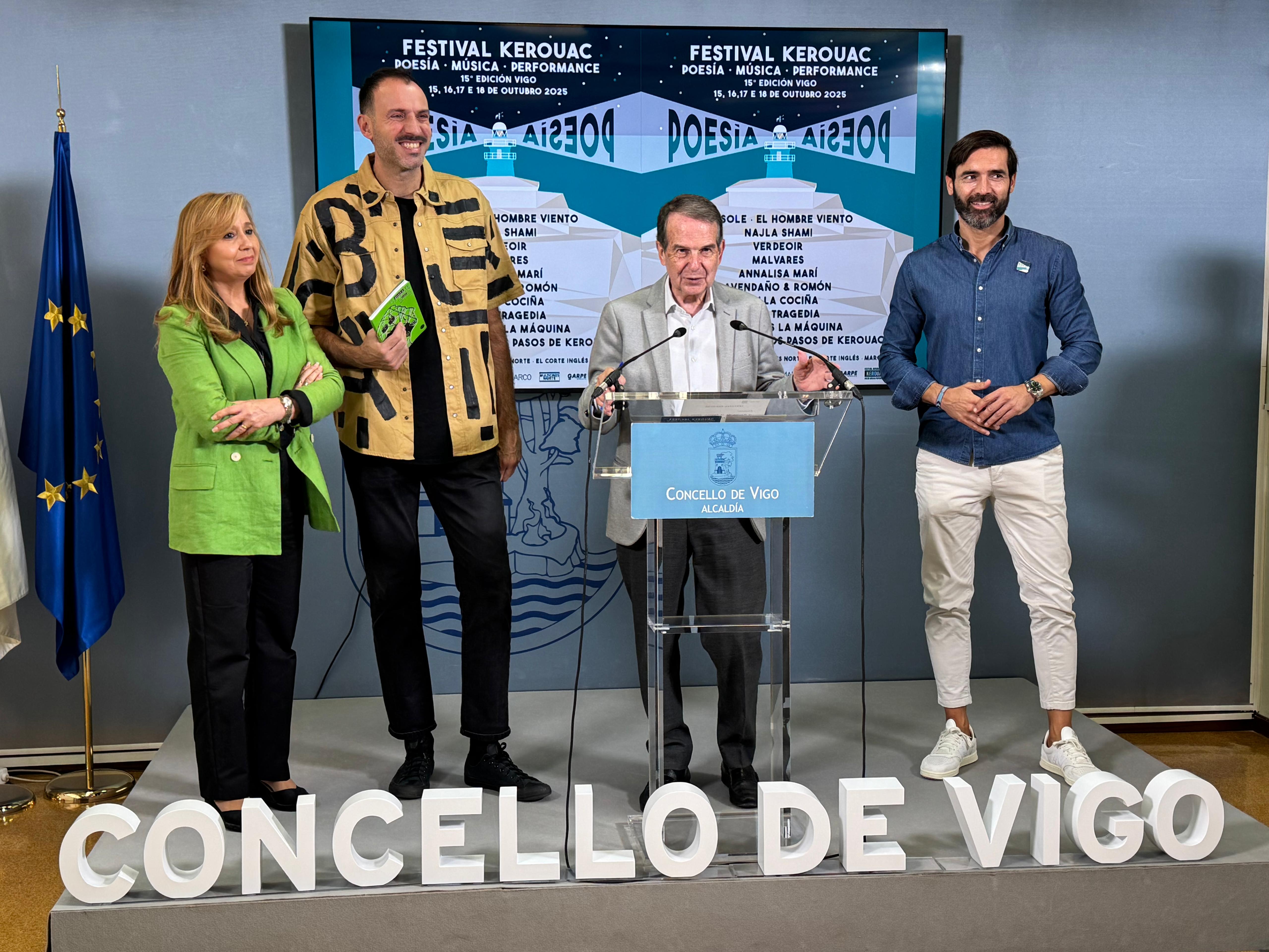 O alcalde participou este mércores na presentación do XV Festival Kerouac xunto a Marcos de la Fuente, poeta e director do evento; Gorka Gómez, concelleiro de Cultura e María Lago, concelleira de Turismo.
