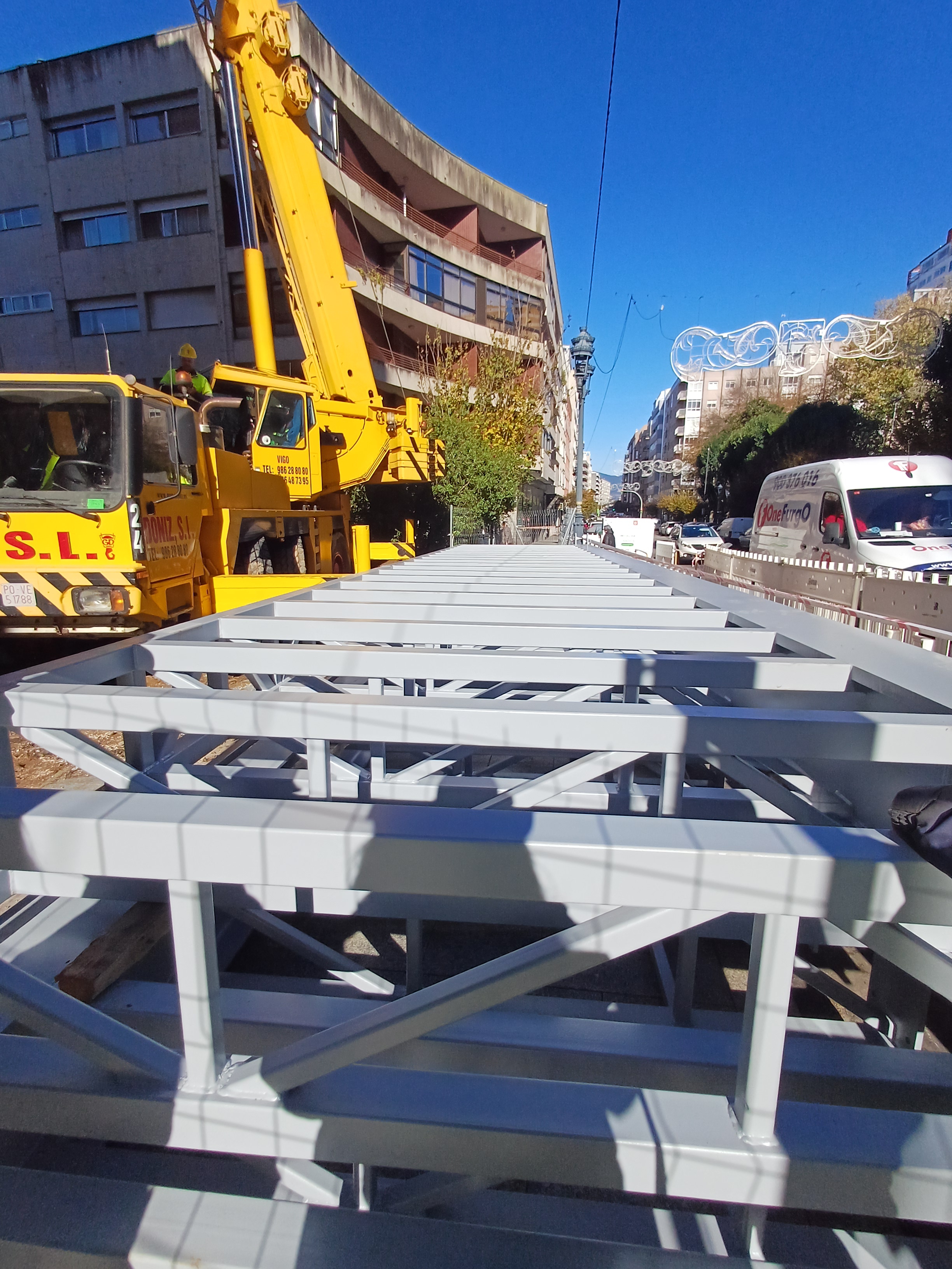 O Goberno municipal avanza na construción do novo ascensor da rúa Juan Ramón Jiménez, entre Marqués de Valterra e Torrecedeira, coa colocación das tres pasarelas que darán acceso á cabina.