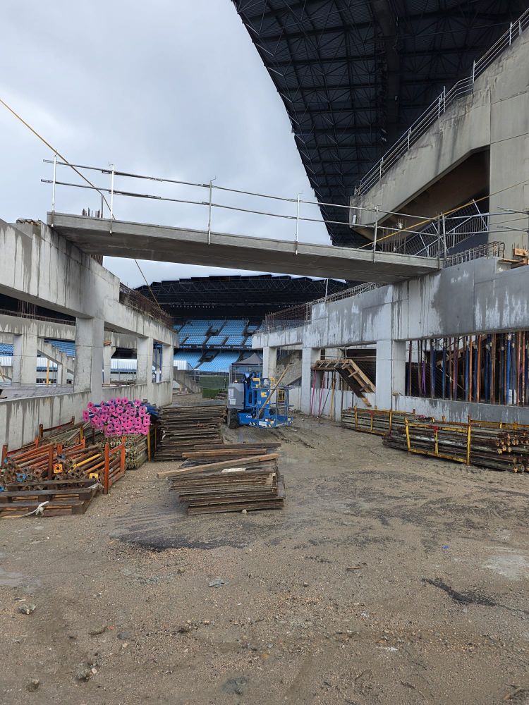 A construción da nova Bancada de Gol sumou hoxe un novo fito coa instalación do primeiro forxado do chan da primeira planta na zona próxima a Río, que se realiza en paralelo á instalación de pilotes na área próxima a Tribuna, segundo remarcou o alcalde.