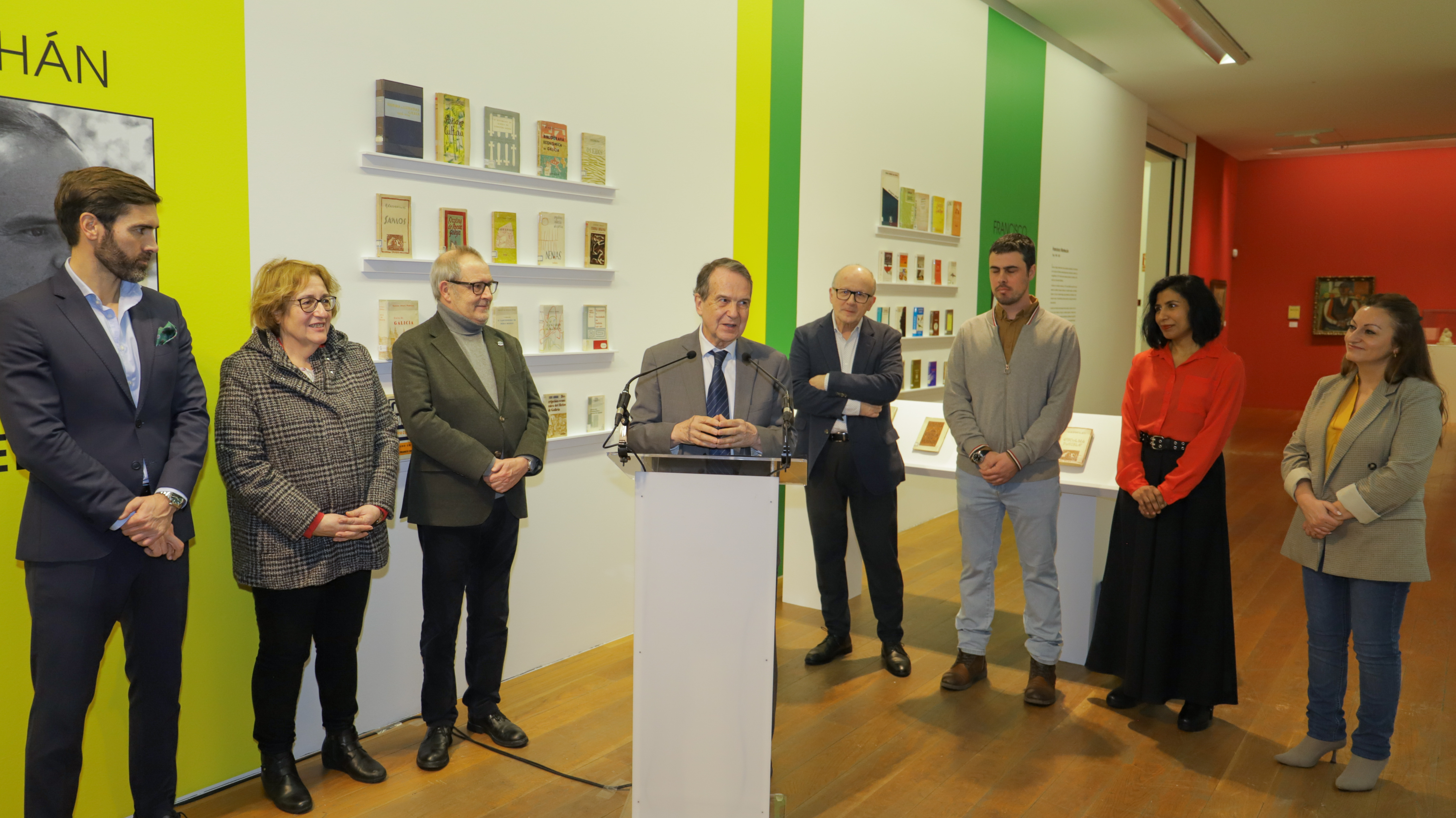 O alcalde participou este xoves na inauguración da exposición xunto a Xosé Manuel Soutullo, director da Editorial Galaxia; Xurxo Martínez, comisario da exposición; Hayat Husein, responsable actual do deseño editorial de Galaxia, e Miguel Fernández-Cid, director do MARCO.