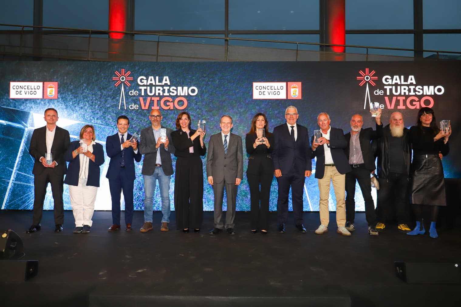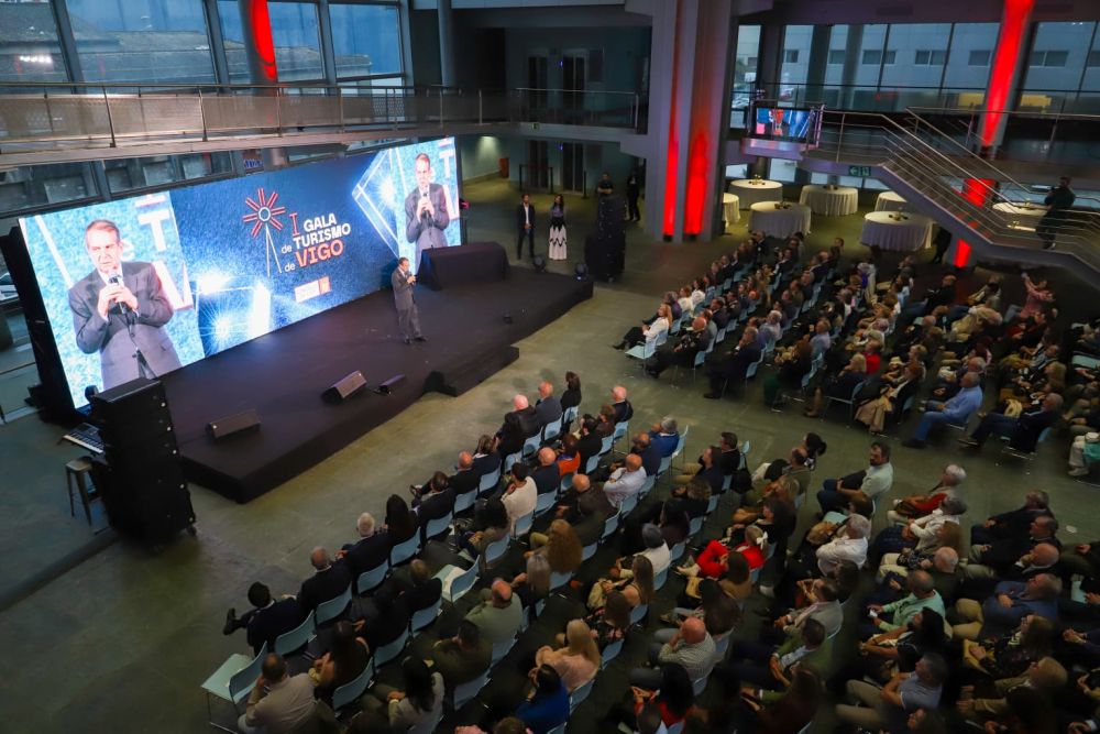 A I Gala de Turismo de Vigo converteuse este martes nun gran escaparate do potencial turístico da cidade, nun evento que combinou actuacións en directo, proxeccións audiovisuais e a entrega de galardóns aos principais protagonistas do sector en recoñecemento ao traballo en favor do turismo da cidade.