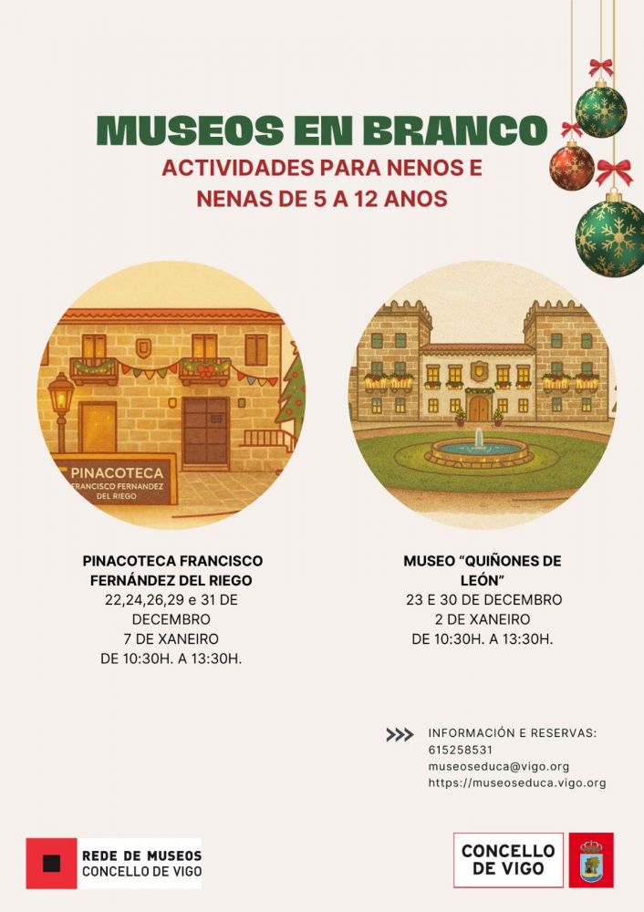 O alcalde explicou que haberá actividades para nenos e nenas de entre 5 e 12 anos no Pazo de Castrelos os días 23 e 30 de decembro e 2 de xaneiro, así como na Pinacoteca os días 22, 24, 26, 29 e 31 de decembro e o 7 de xaneiro.